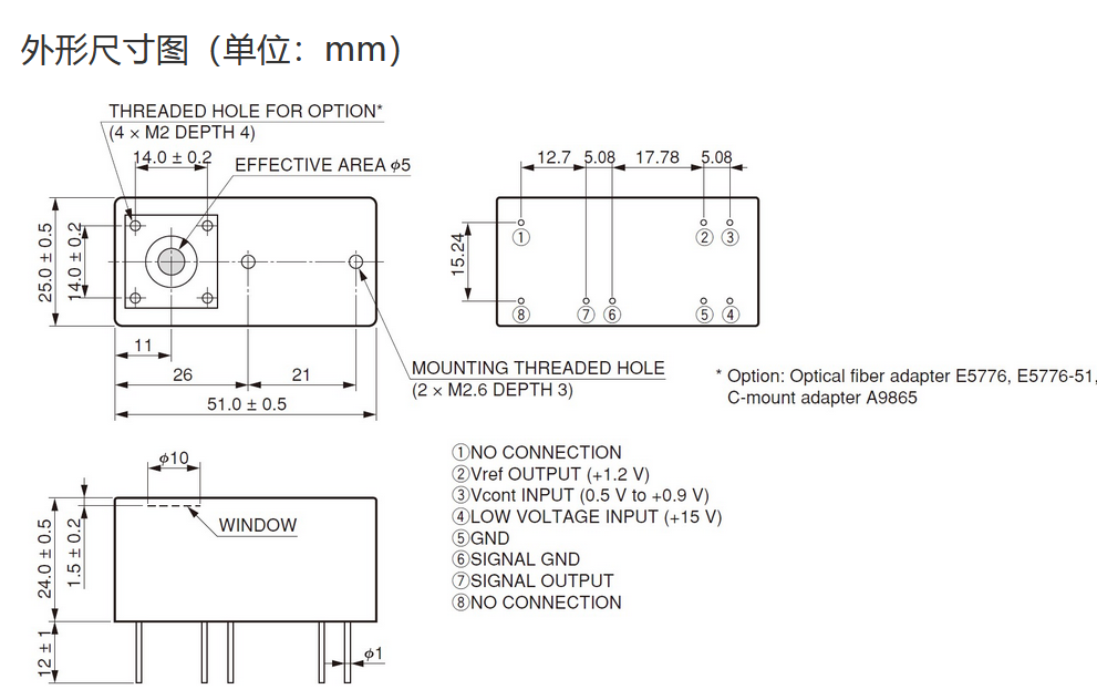 光阴极面区域尺寸  |