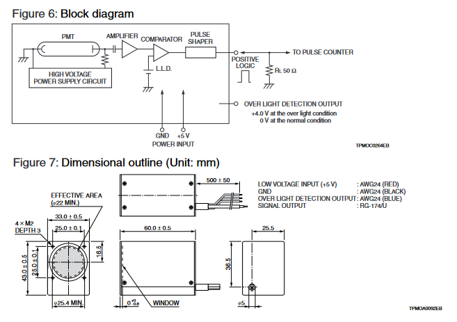 HAMAMATSU滨松 光电倍增管模块 H13467-01 详细参数 光阴极面区域形状 圆形 光阴极面区域尺寸 22 mm 直径 波长(短) 300 nm 波长(长) 650 nm 波长(峰值) 375 nm 尺寸 (W x H x D) 33.0 x 43.0 x 60.0 mm 输入电压 +4.75 至 +5.25 V 最大值 输入电压 6 V 最大值 输入电流 100 mA 300 nm 处的计数灵敏度典型值 1.4 x 105 s-1・pW-1 400 nm 处的计数灵敏度典型值 2.7 x 105 s-1・pW-1 500 nm 处的计数灵敏度典型值 1.7 x 105 s-1・pW-1 600 nm 处的计数灵敏度典型值 4.6 x 104 s-1・pW-1 计数线性度 6.0 x 106 s-1 暗计数典型值 15 s-1 暗计数最大值 80 s-1 脉冲对分辨率 18 ns 输出脉冲宽度 9 ns 输出脉冲高度最小值 +2.0(50Ω 负载)+4.0(未端接)V 建议的负载电阻 50 Ω 信号输出逻辑 正逻辑 工作环境温度 +5 至 +40 °C 储存温度 -20 至 +50 °C 重量 111 g 0755 84689265 手机/微信:18320955412 QQ:2423332841 邮箱:2423332841@qq.com...