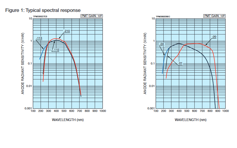 [Anode] V 输出电压取决于 PMT 暗电流典型值 |