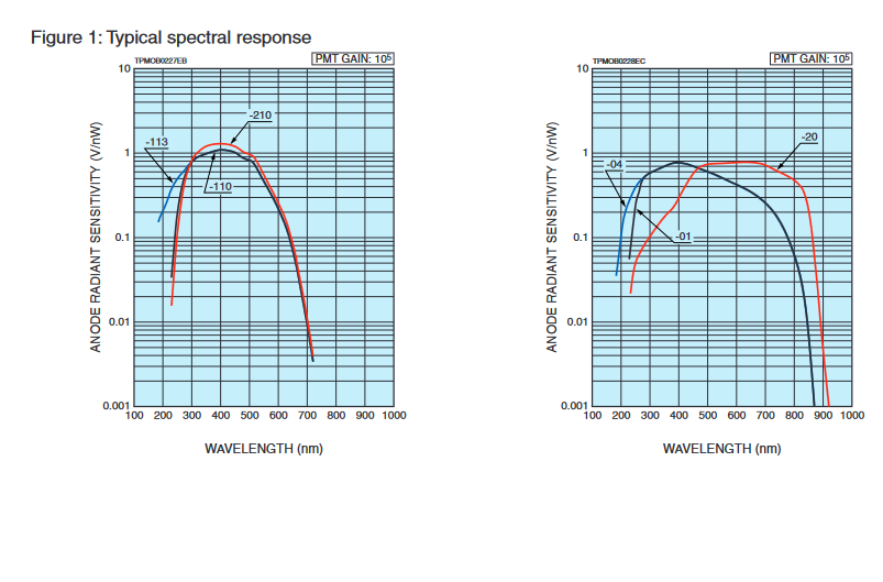 [Anode] V 输出电压取决于 PMT 暗电流典型值 |