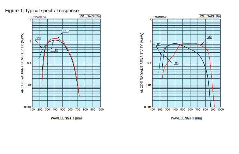 [Anode] V 输出电压取决于 PMT 暗电流典型值 |