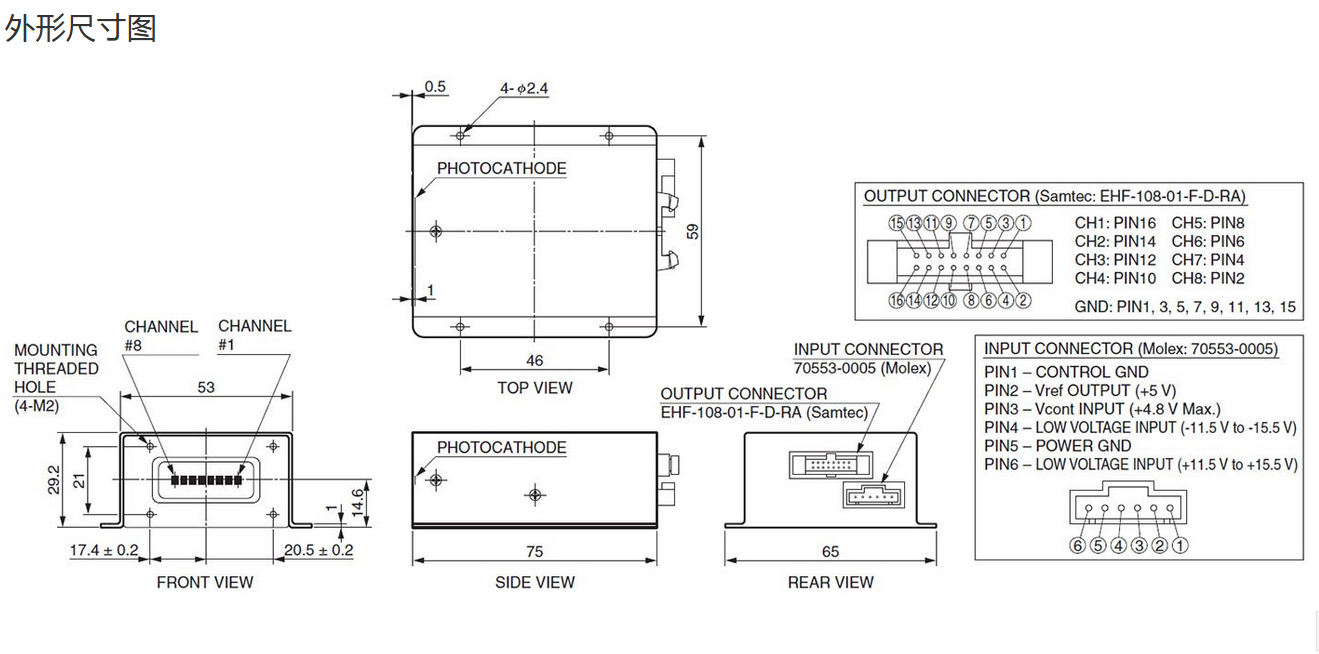 光阴极面区域尺寸 |