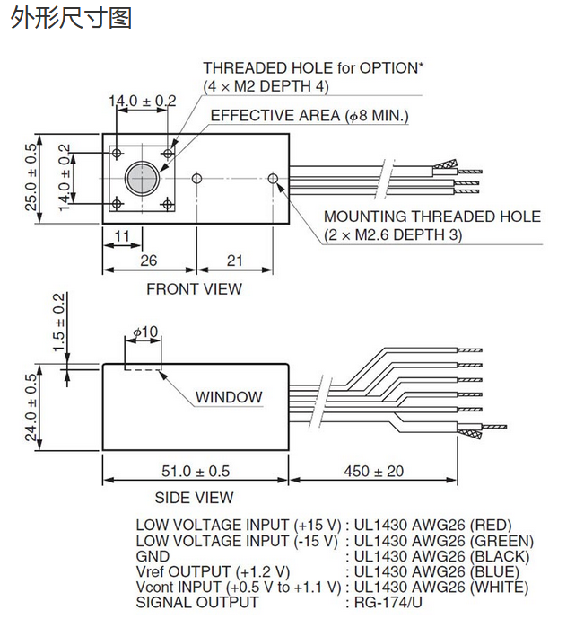 光阴极面区域尺寸 |