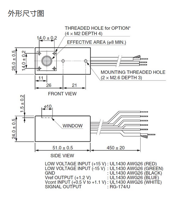光阴极面区域尺寸 |