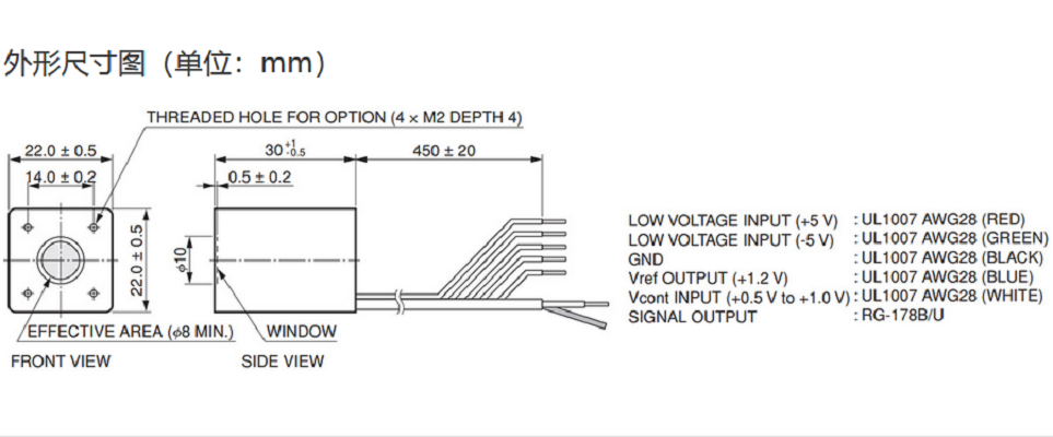 光阴极面区域尺寸 |