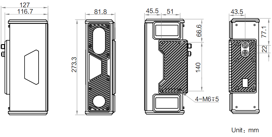 | 结构 | 外形尺寸 | 273.3 mm × 81.8 mm × 127 mm |