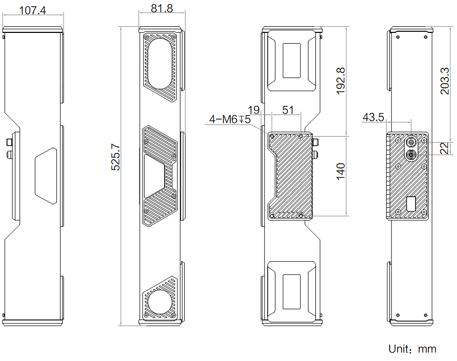 | 结构 | 外形尺寸 | 525.7 mm × 81.8 mm × 107.4 mm |