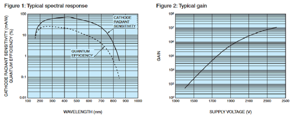 HAMAMATSU滨松 光电倍增管组件 H15547-07 详细参数 组件尺寸 45 mm 直径 PMT 管尺寸 - mm 内置 PMT 类型编号 R15390U-07 光阴极面区域形状 圆形 光阴极面区域尺寸 11 mm 直径 波长(短) 160 nm 波长(长) 850 nm 波长(峰值) 430 nm 光阴极面材料 多碱 窗材 石英 倍增器电极结构 MCP 倍增器电极级数 2 [Max. Rating] 阳极至阴极电压 -2400 V [Cathode] 亮度灵敏度最小值 100 μA/lm [Cathode] 亮度灵敏度典型值 180 μA/lm [Cathode] 红白比 (R-68) 典型值 0.15 [Anode] 亮度灵敏度典型值 100 A/lm [Anode] 增益率典型值 5.6 x 105 [Anode] 暗电流(30 分钟后) 典型值 2 nA [Anode] 暗电流(30 分钟后) 最大值 10 nA [Time Response] 上升时间典型值 0.19 ns [Time Response] 渡越时间分散度典型值 0.04 ns 0755 84689265 手机/微信:18320955412  QQ:2423332841  邮箱:2423332841@qq.com  ...