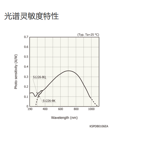 HAMAMATSU滨松 硅光电二极管 S1226-5BQ 详细参数 受光面 2.4 × 2.4 mm 像素数 1 封装 金属 封装类别 TO-5 制冷 非冷却型 反向电压(最大值) 5 V 灵敏度波长范围 190 至 1000 nm 最大灵敏度波长(典型值) 720 nm 感光灵敏度(典型值) 0.36 A/W 暗电流(最大值) 5 pA 上升时间(典型值) 0.5 μs 结电容(典型值) 160 pF 噪声等效功率(典型值) 2.5×10-15 W/Hz1/2 测量条件 Ta = 25°C,典型值,感光灵敏度:λ = 720 nm,暗电流:VR = 10 mV,结电容:VR = 0 V,f = 10 kHz,除非另有说明 0755 84689265 手机/微信:18320955412  QQ:2423332841  邮箱:2423332841@qq.com  ...