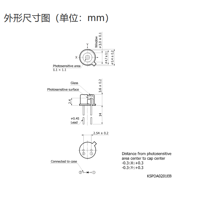 Ta = 25°C,典型值,感光灵敏度:λ = 720 nm,暗电流:VR = 10 mV,结电容:VR = 0 V,f = 10 kHz,除非另有说明  |