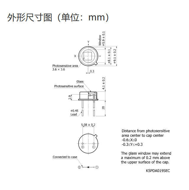 Ta = 25°C,典型值,感光灵敏度:λ = 720 nm,暗电流:VR = 10 mV,结电容:VR = 0 V,f = 10 kHz,除非另有说明  |