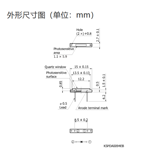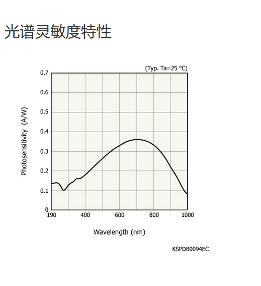 典型值 Ta=25°C,感光灵敏度:λ = 720 nm,暗电流:VR = 10 mV,结电容:VR = 0 V,f = 10 kHz,除非另有说明  |