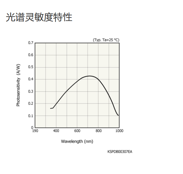 典型值 Ta=25°C,感光灵敏度:λ = 720 nm,暗电流:VR = 10 mV,结电容:VR = 0 V,f = 10 kHz,除非另有说明  |