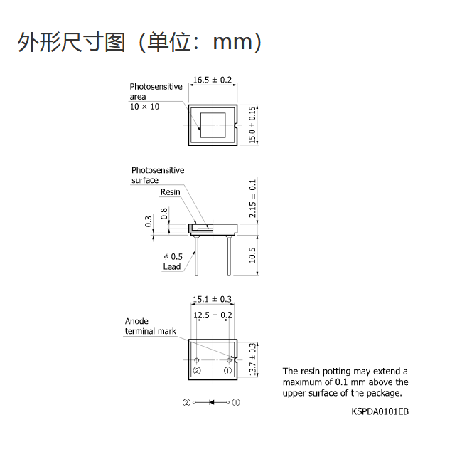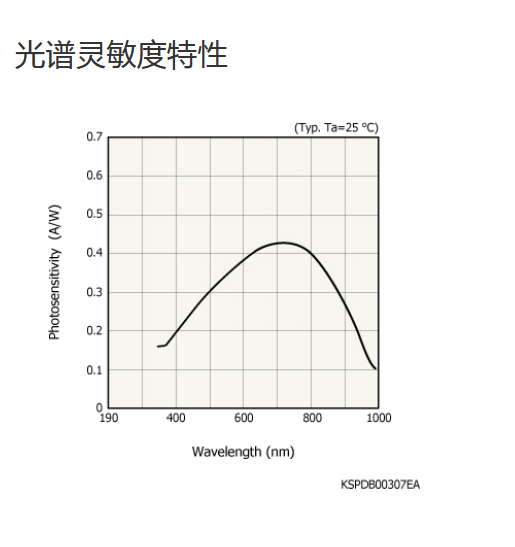 典型值 Ta=25°C,感光灵敏度:λ = 720 nm,暗电流:VR = 10 mV,结电容:VR = 0 V,f = 10 kHz,除非另有说明  |