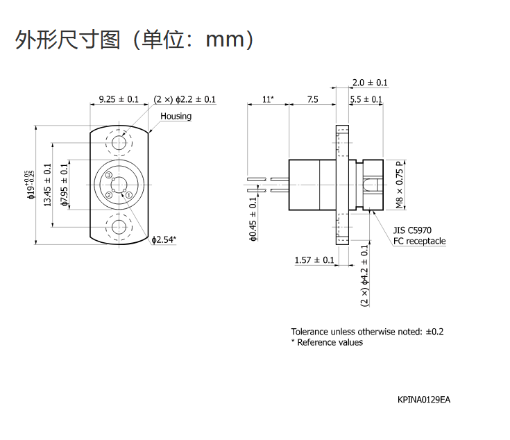 典型值 Ta=25°C,感光灵敏度:λ = 850 nm,暗电流:VR = 3.3 V,截止频率:VR = 3.3 V,结电容:VR = 3.3 V,f = 1 MHz,除非另有说明  |