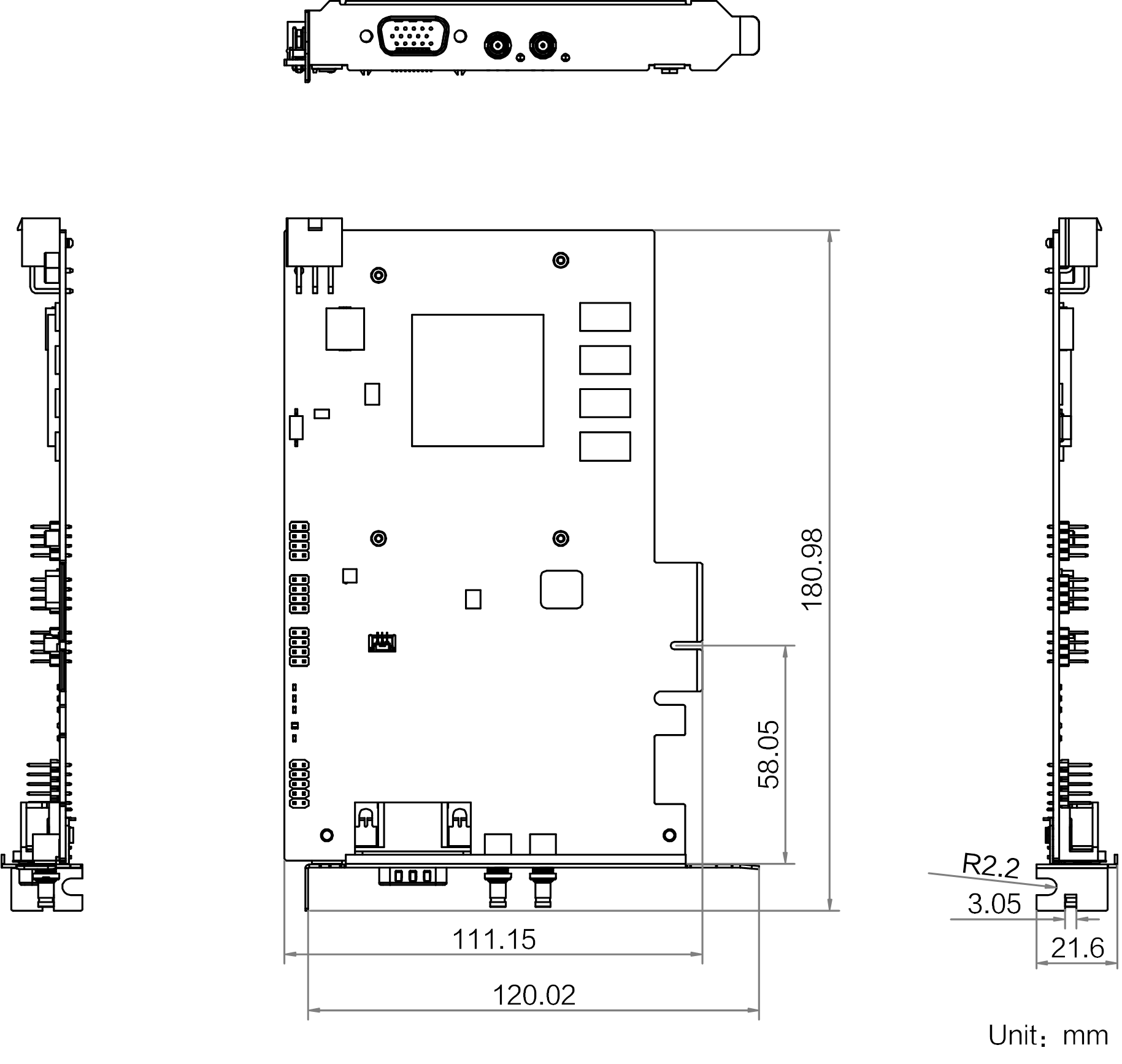 | 连接器 | 挡板I/O:DB15公头 排针I/O:9 pin排针(2.54 mm间距,2 × 5,10 pin盲孔) |