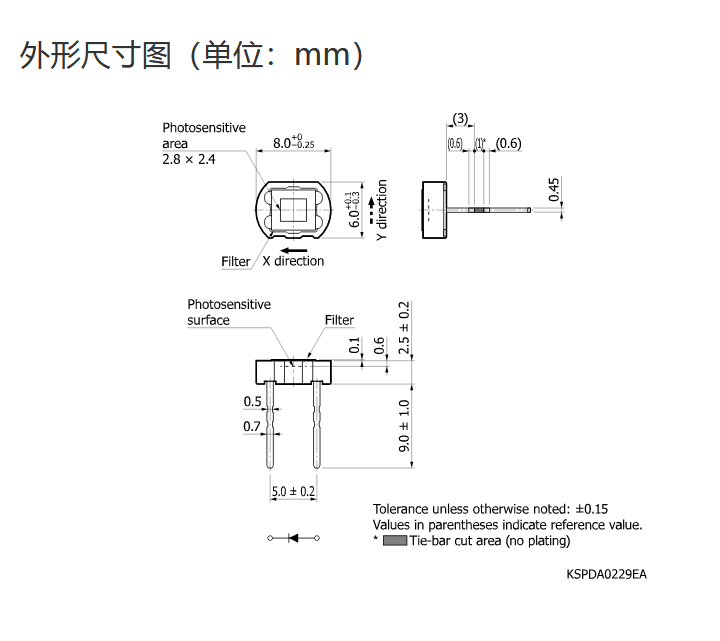 Ta = 25°C,典型值,感光灵敏度:λ = λp,暗电流:VR = 1 V,结电容:VR = 0 V,f = 10 kHz,除非另有说明  |