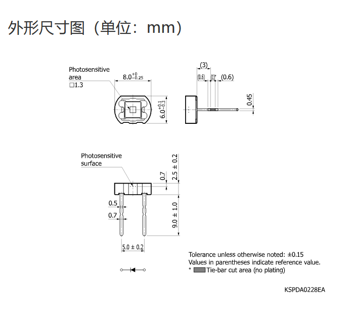 Ta = 25°C,典型值,感光灵敏度:λ = λp,暗电流:VR = 1 V,结电容:VR = 0 V,f = 10 kHz,除非另有说明  |
