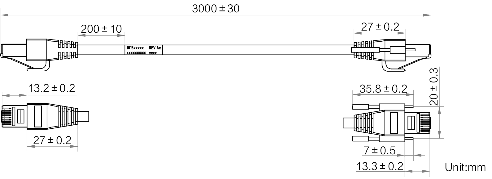 | 物理规格 | A端接口 | RJ45(带锁定螺柱) |