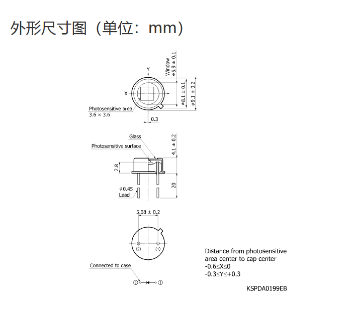 HAMAMATSU滨松 硅光电二极管 S1336-44BQ 详细参数 受光面 3.6 × 3.6 mm 像素数 1 封装 金属 封装类别 TO-5 制冷 非冷却型 反向电压(最大值) 5 V 灵敏度波长范围 190 至 1100 nm 最大灵敏度波长(典型值) 960 nm 感光灵敏度(典型值) 0.5 A/W 暗电流(最大值) 50 pA 上升时间(典型值) 0.5 μs 结电容(典型值) 150 pF 噪声等效功率(典型值) 1×10-14 W/Hz1/2 测量条件 Ta = 25°C,典型值,除非另有说明,感光灵敏度:λ = 960 nm,暗电流:VR=10 mV,上升时间:VR = 0 V,结电容:VR = 0 V,f = 10 kHz   0755 84689265 手机/微信:18320955412  QQ:2423332841  邮箱:2423332841@qq.com...