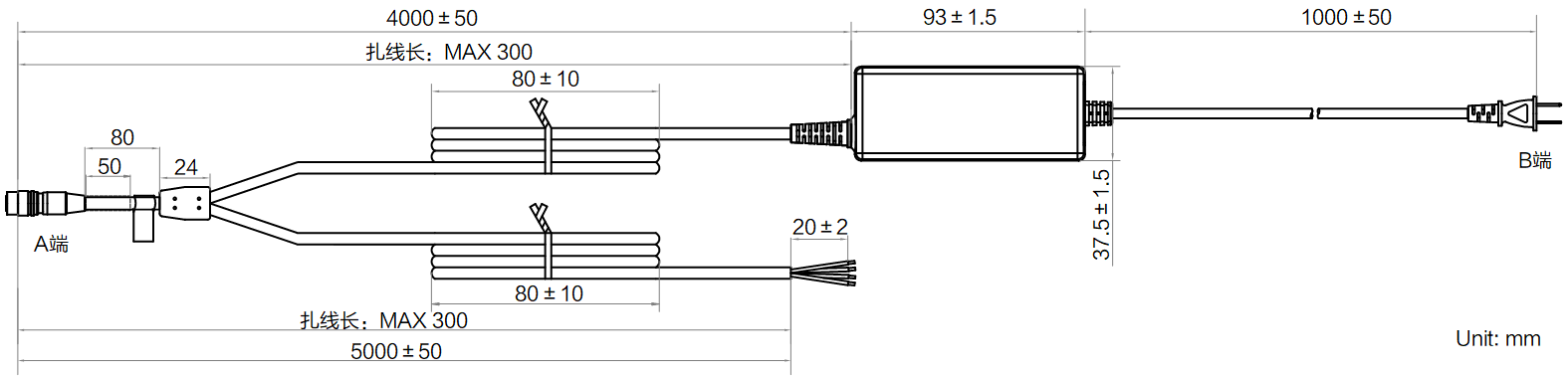 | 物理规格 | A端接口 | P7 6-pin 航空头(母)+ 4芯Open |