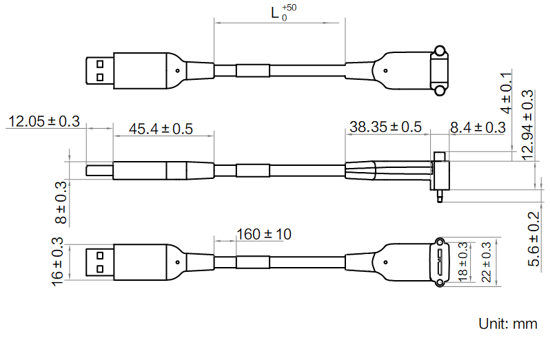 | 物理规格 | A端接口 | Micro-B male(螺钉),弯头(下出线) |