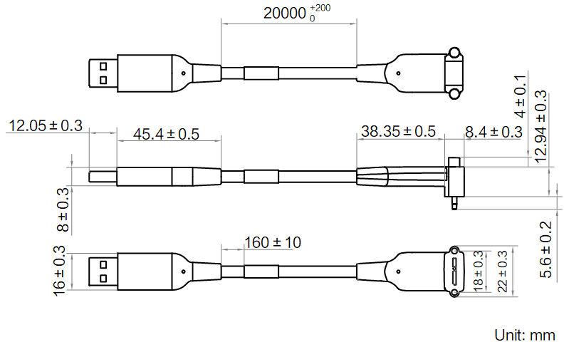 | 线束直径 | 4.8 ± 0.2 mm | |
