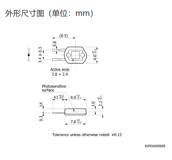 典型值 Ta=25°C,感光灵敏度:λ=λp,暗电流:VR = 1V,结电容:VR = 0 V,f = 10 kHz,除非另有说明  |
