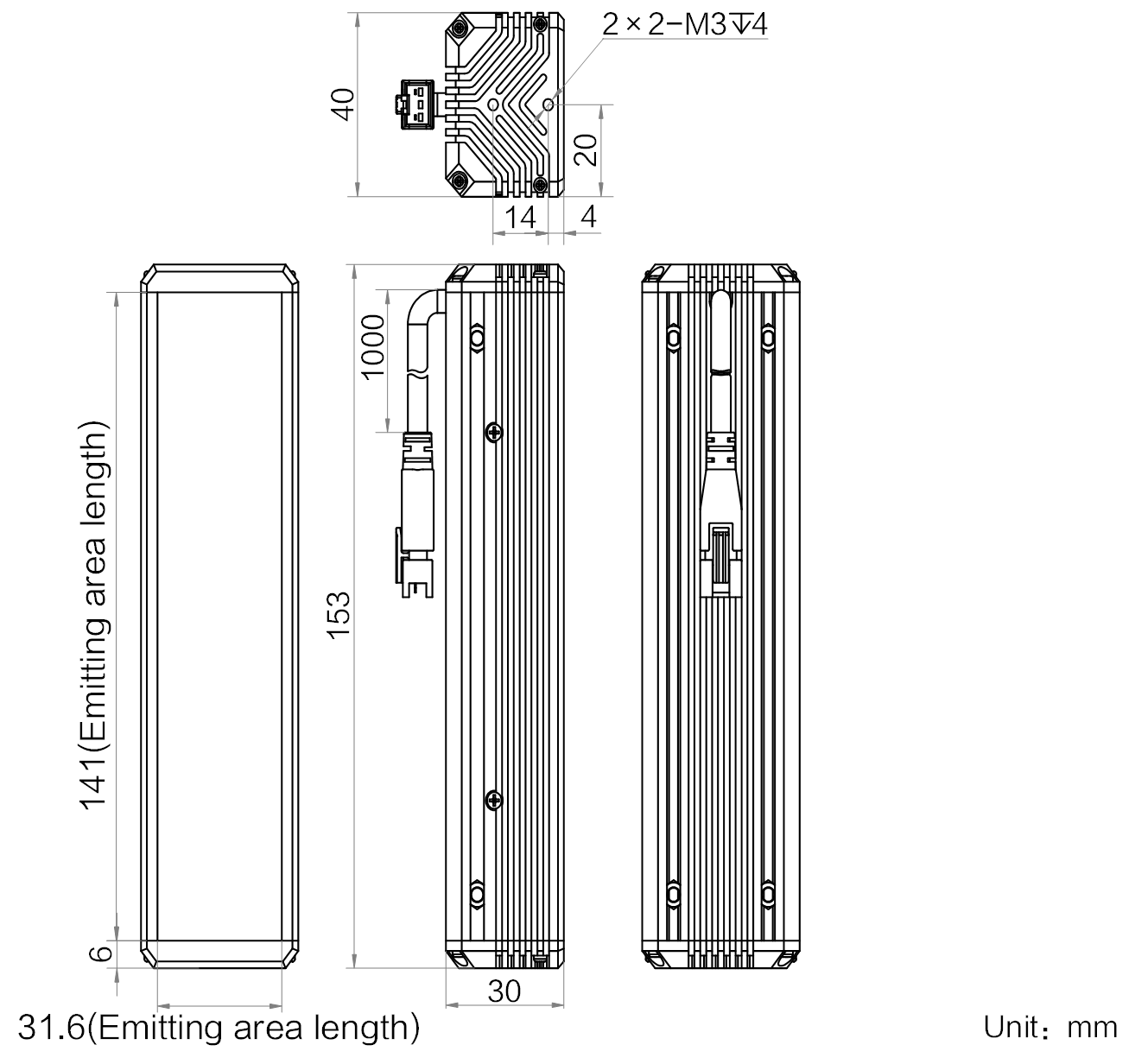 | 发光区尺寸 | 141 mm × 31.6 mm | |