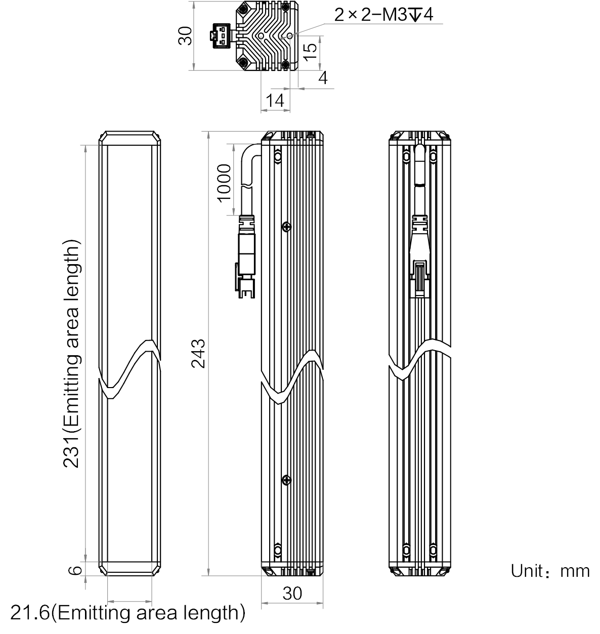 | 发光区尺寸 | 231 mm × 21.6 mm | |