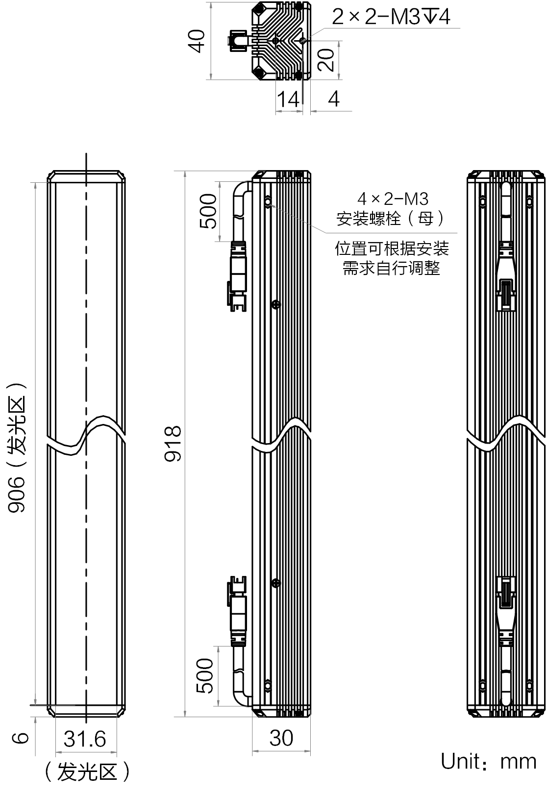 | 发光区尺寸 | 906 mm × 31.6 mm | |