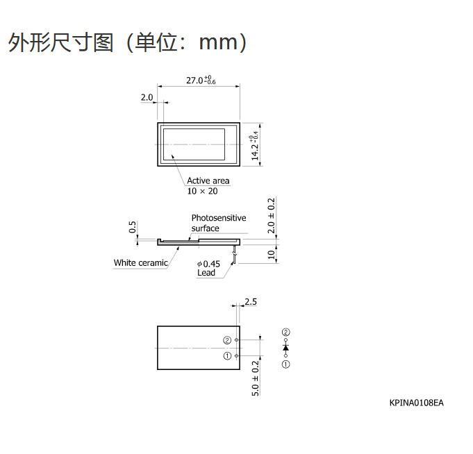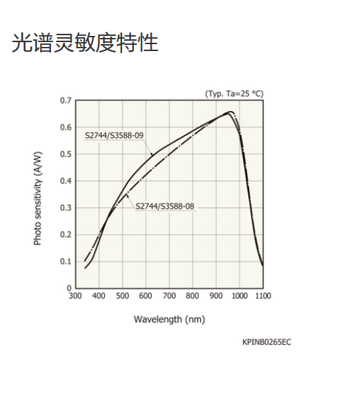 Ta = 25°C,典型值,感光灵敏度:λ = λp,暗电流:VR = 70 V,截止频率:VR = 70 V,结电容:VR = 70 V,f = 1 MHz,噪声等效功率:VR = 70 V,除非另有说明 |