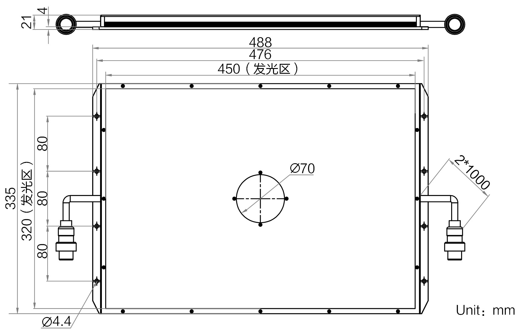 | 发光区尺寸 | 450 mm × 320 mm | |