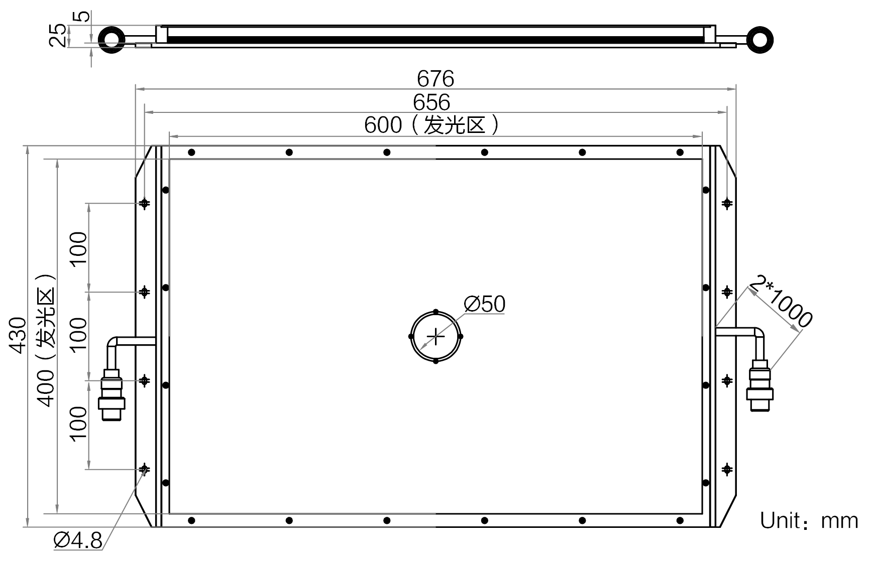 | 发光区尺寸 | 600 mm × 400 mm | |
