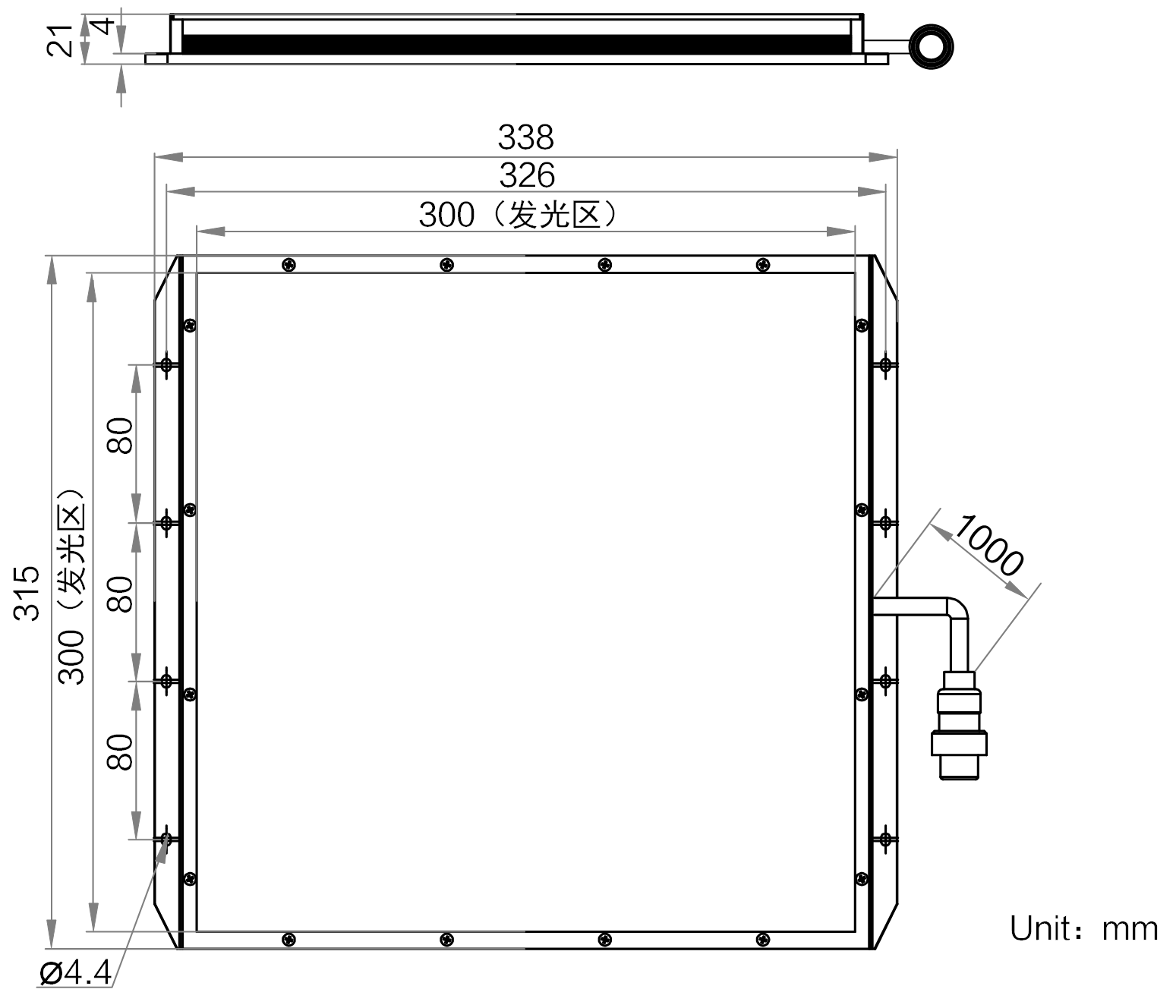 | 发光区尺寸 | 300 mm × 300 mm | |