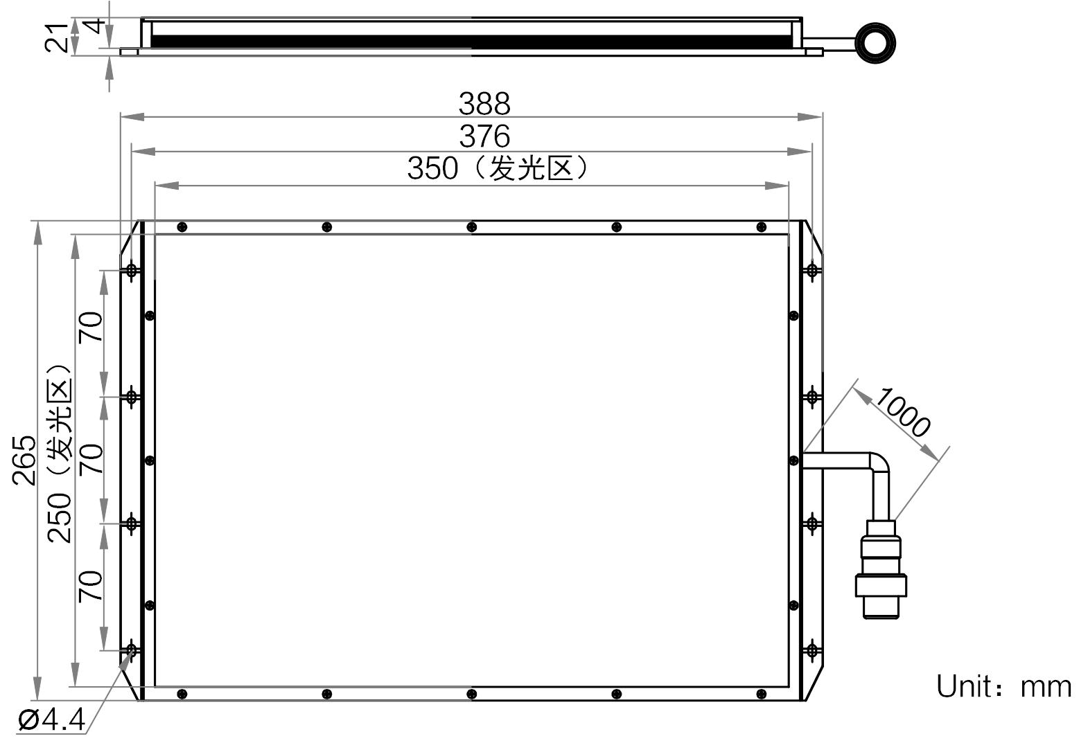 | 发光区尺寸 | 350 mm × 250 mm | |