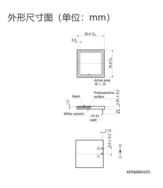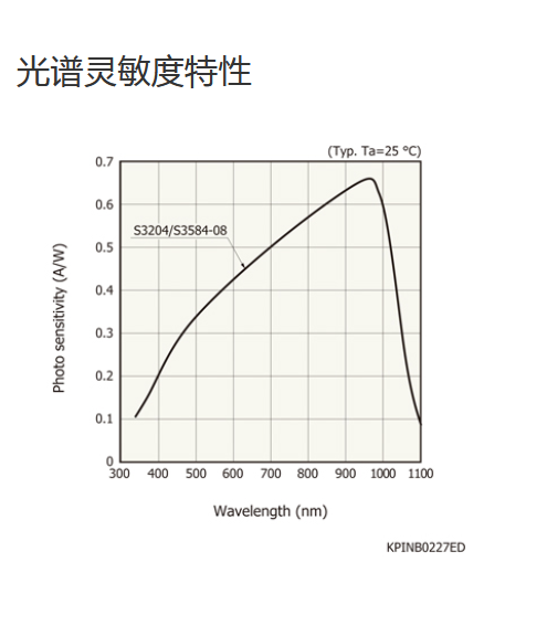 Ta = 25°C,典型值,感光灵敏度:λ = λp,暗电流:VR = 70 V,截止频率:VR = 70 V,结电容:VR = 70 V,f = 1 MHz,噪声等效功率:VR = 70 V,除非另有说明 |