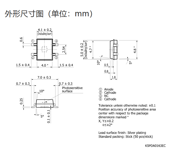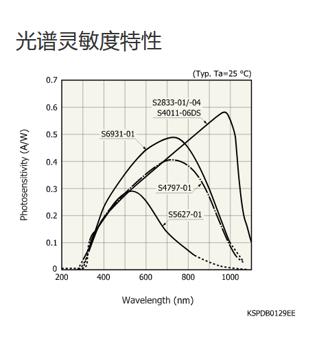 典型值 Ta=25°C,感光灵敏度:λ=λp,暗电流:VR = 1 V,结电容:VR = 0 V,f = 10 kHz,除非另有说明 |