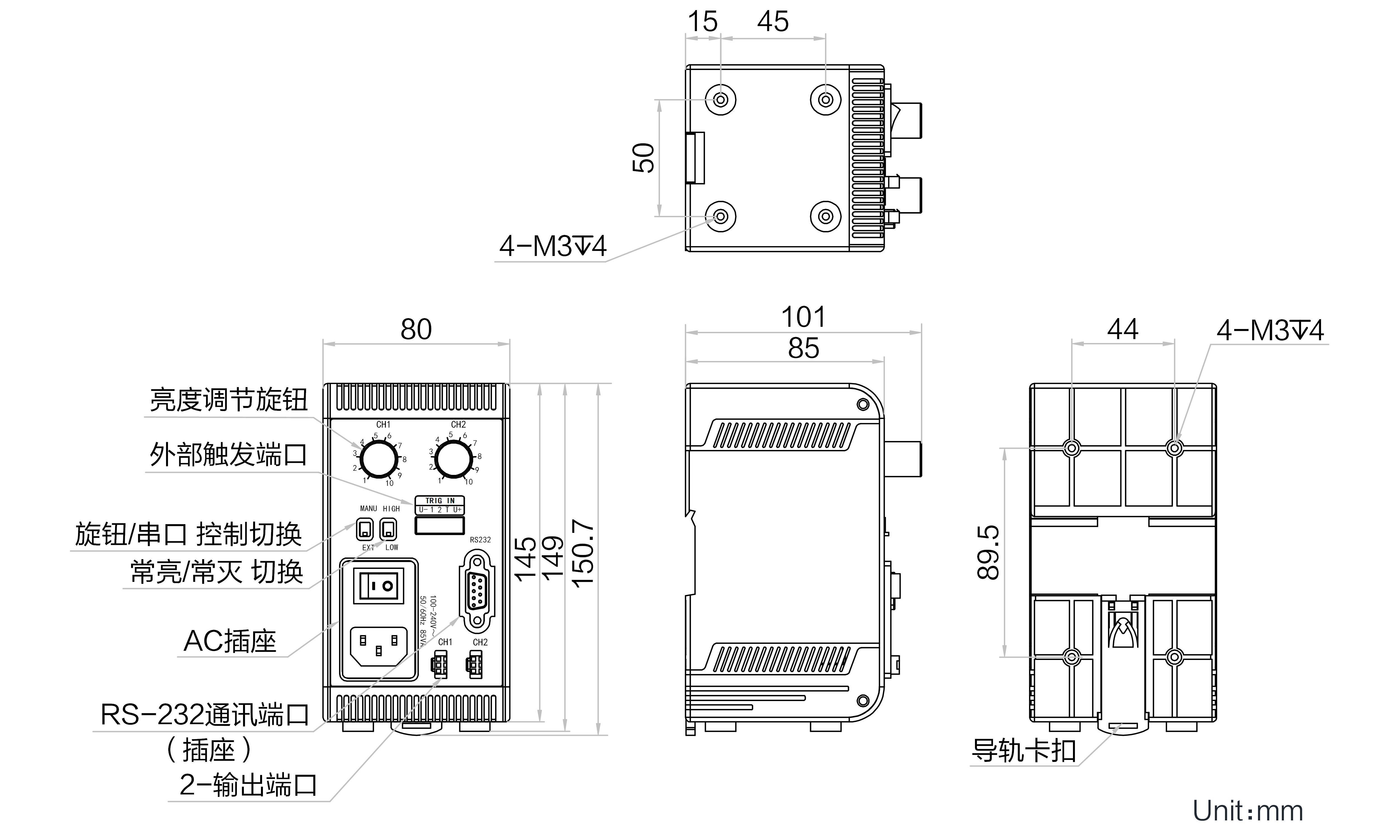 | 调光方式 | 面板旋钮,串口通讯 | |