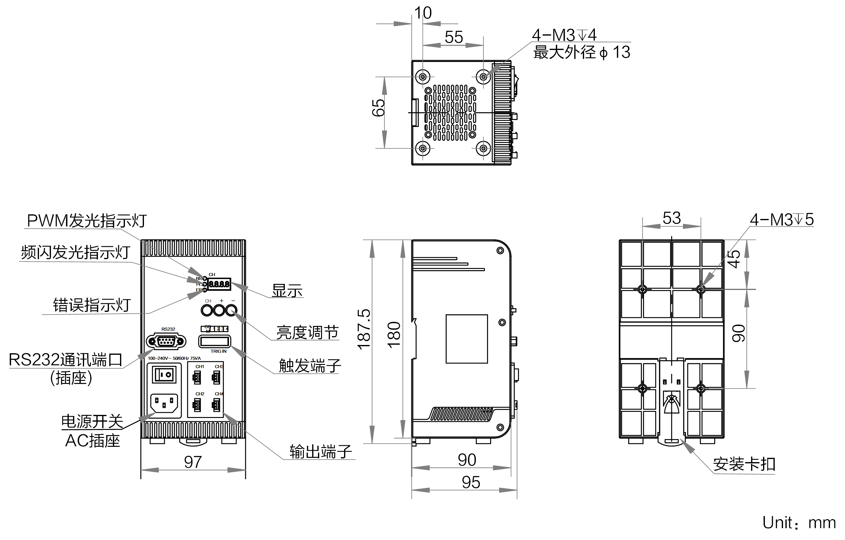 | 名称 | 光源控制器,数字式,恒压输出,总输出功率60W,4通道,单通道最高输出60W,SMR-03V-BC接头,带触发 | |