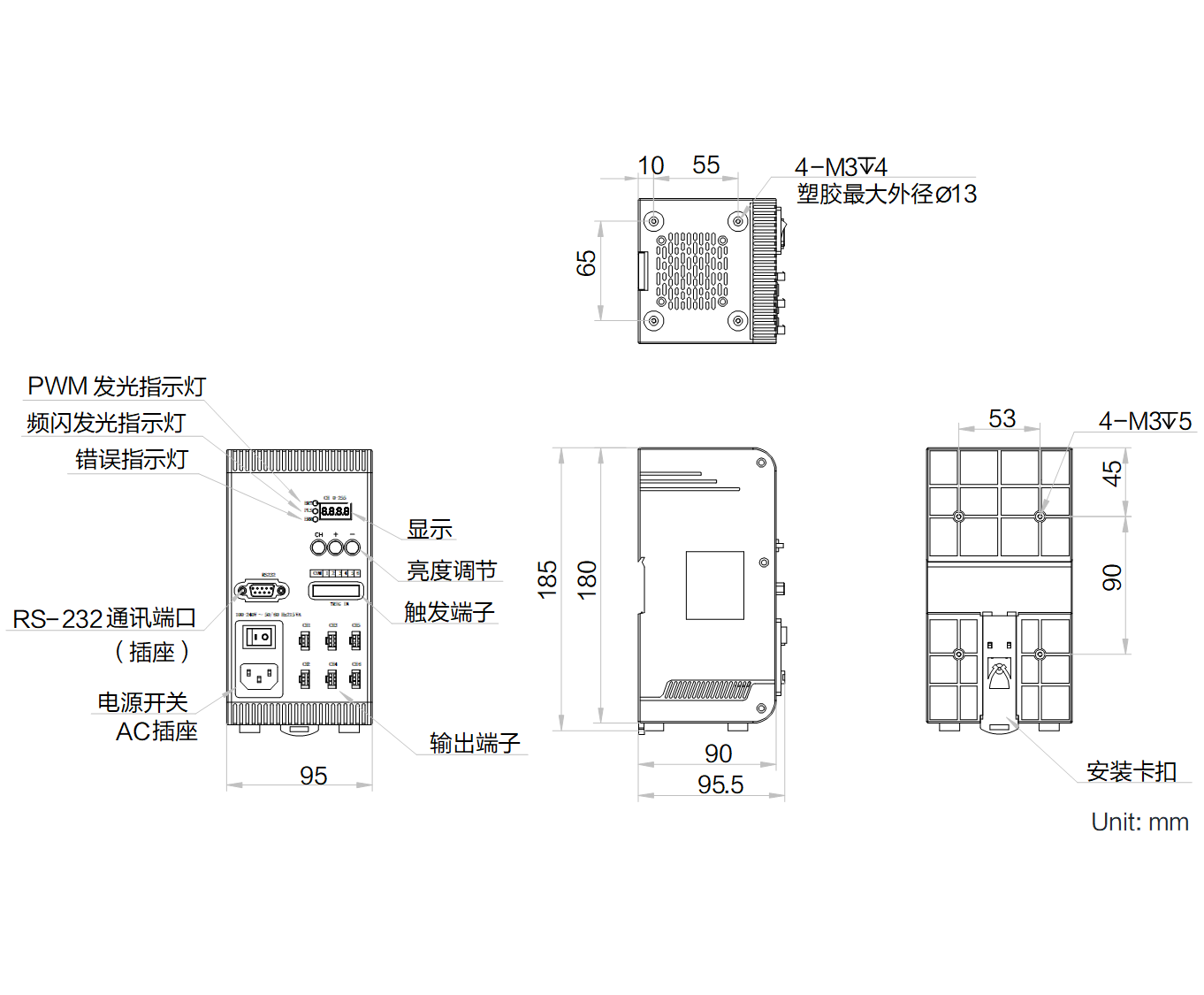 | 调光方式 | 面板旋钮,串口通讯 | |