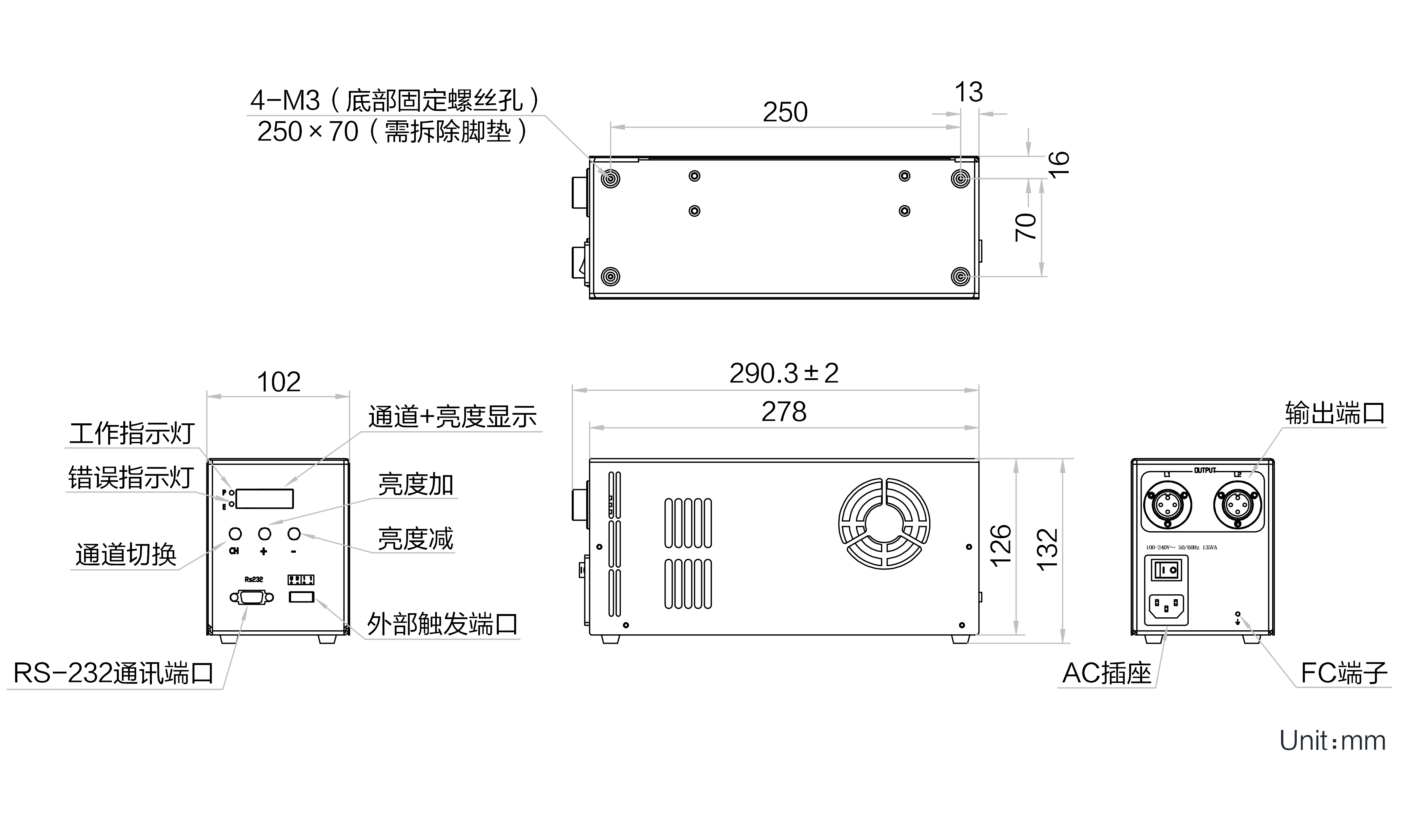 | 名称 | 模拟恒流光源控制器,300W,1通道,20M-4K接口,线光源控制器 | |