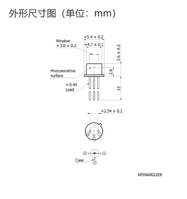 典型值 Ta=25°C,感光灵敏度:λ = 780 nm,暗电流:VR = 10 V,截止频率:VR = 10 V,结电容:VR = 10 V,f = 1 MHz,噪声等效功率:VR = 10 V,λ = λp,除非另有说明 |