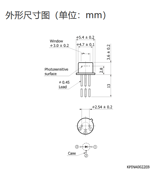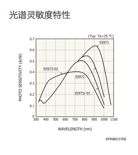 典型值 Ta=25°C,感光灵敏度:λ = 780 nm,暗电流:VR = 10 V,截止频率:VR = 10 V,结电容:VR = 10 V,f = 1 MHz,噪声等效功率:VR = 10 V,λ = λp,除非另有说明 |