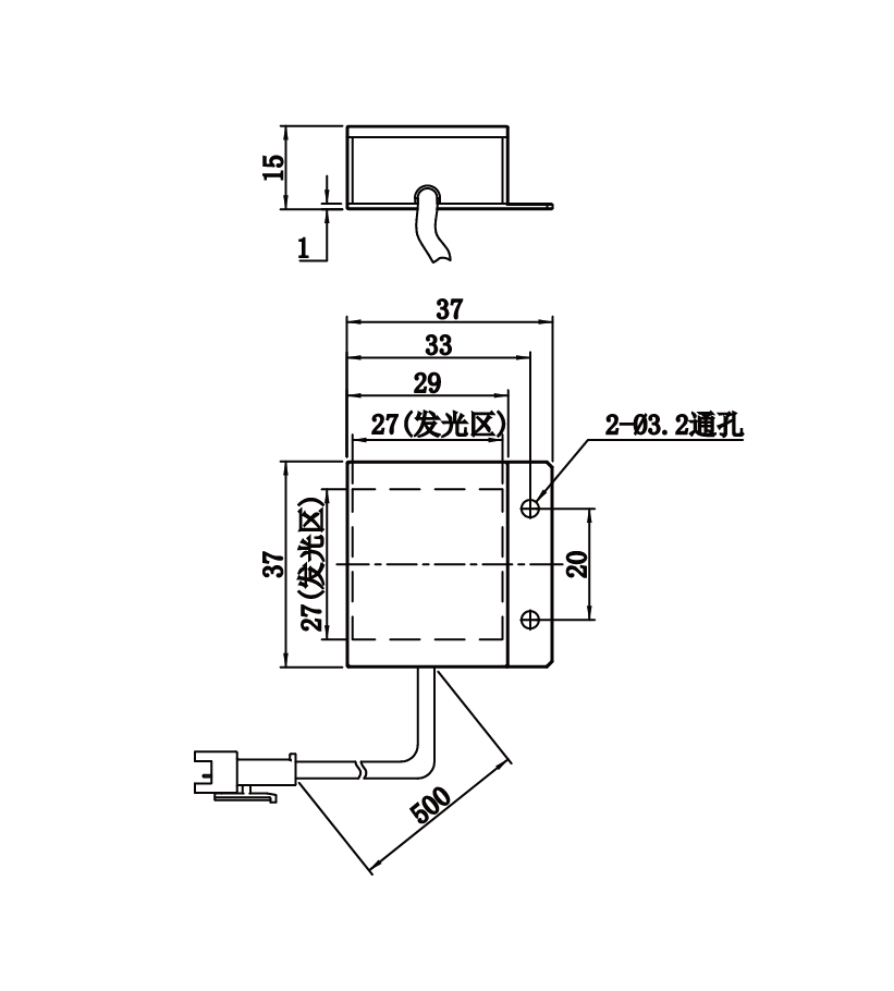 | 发光区尺寸 | 27 mm × 27 mm | |