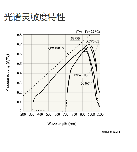 典型值 Ta=25°C,感光灵敏度:λ = 900 nm,暗电流:VR = 10 V,截止频率:VR = 10 V,结电容:VR = 10 V,f = 1 MHz,噪声等效功率:VR = 10 V,除非另有说明 |