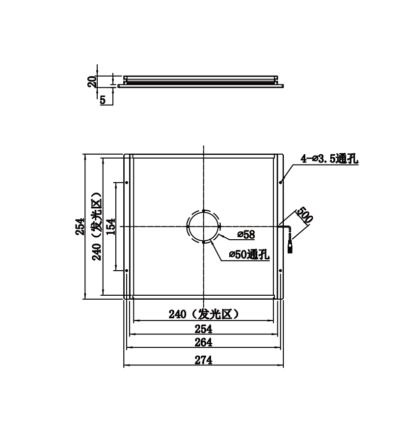 | 发光区尺寸 | 240 mm × 240 mm | |