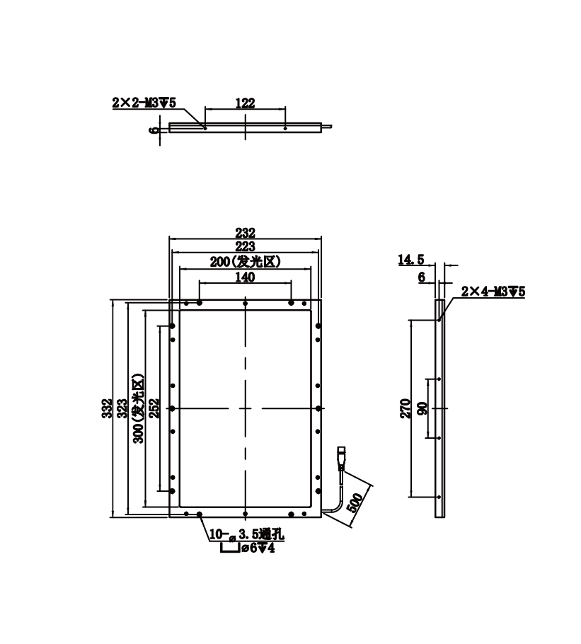 | 发光区尺寸 | 300 mm × 200 mm | |