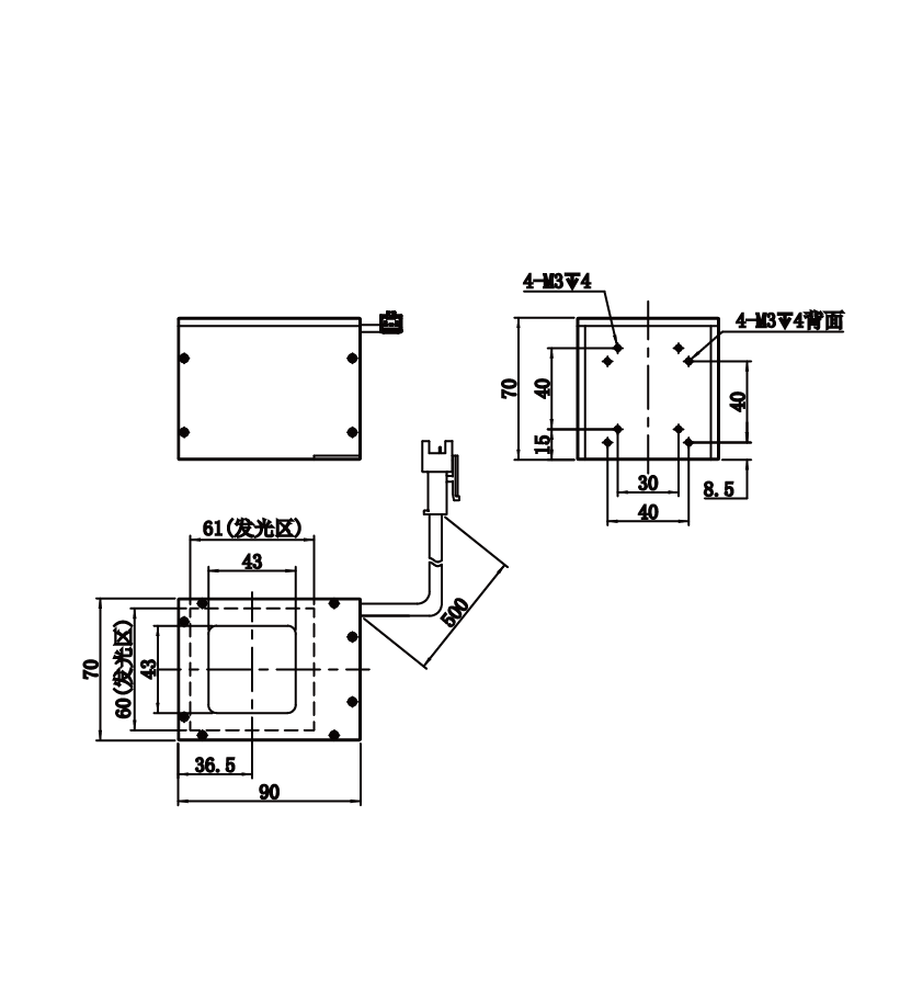| 发光区尺寸 | 61 mm × 60 mm | |