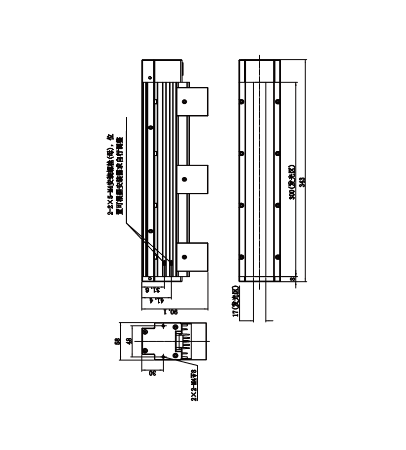 | 发光区尺寸 | 300 mm × 17 mm | |
